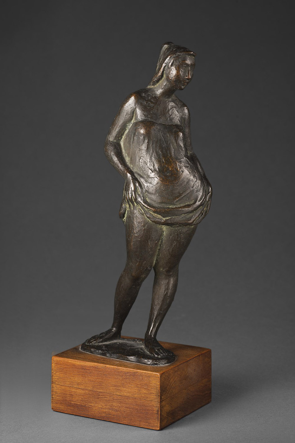 Giuseppe Scalvini (Milano 1908 - 2003) "Figura femminile" '56 scultura in bronzo (h cm 29) poggiante su base in legno Firmata e datata alla base