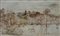 Mario Cavaglieri (Rovigo, 1887 - Peyloubère -par- Pavie, 1969) PAESAGGIO, 1962 Inchiostro e pastello su carta, cm. 27x44 Firma e data in basso a destra.