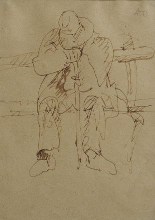 Lotto 1026 | Lorenzo Viani (Viareggio, 1882 - Ostia, 1936) UOMO SULLA PANCHINA China su...