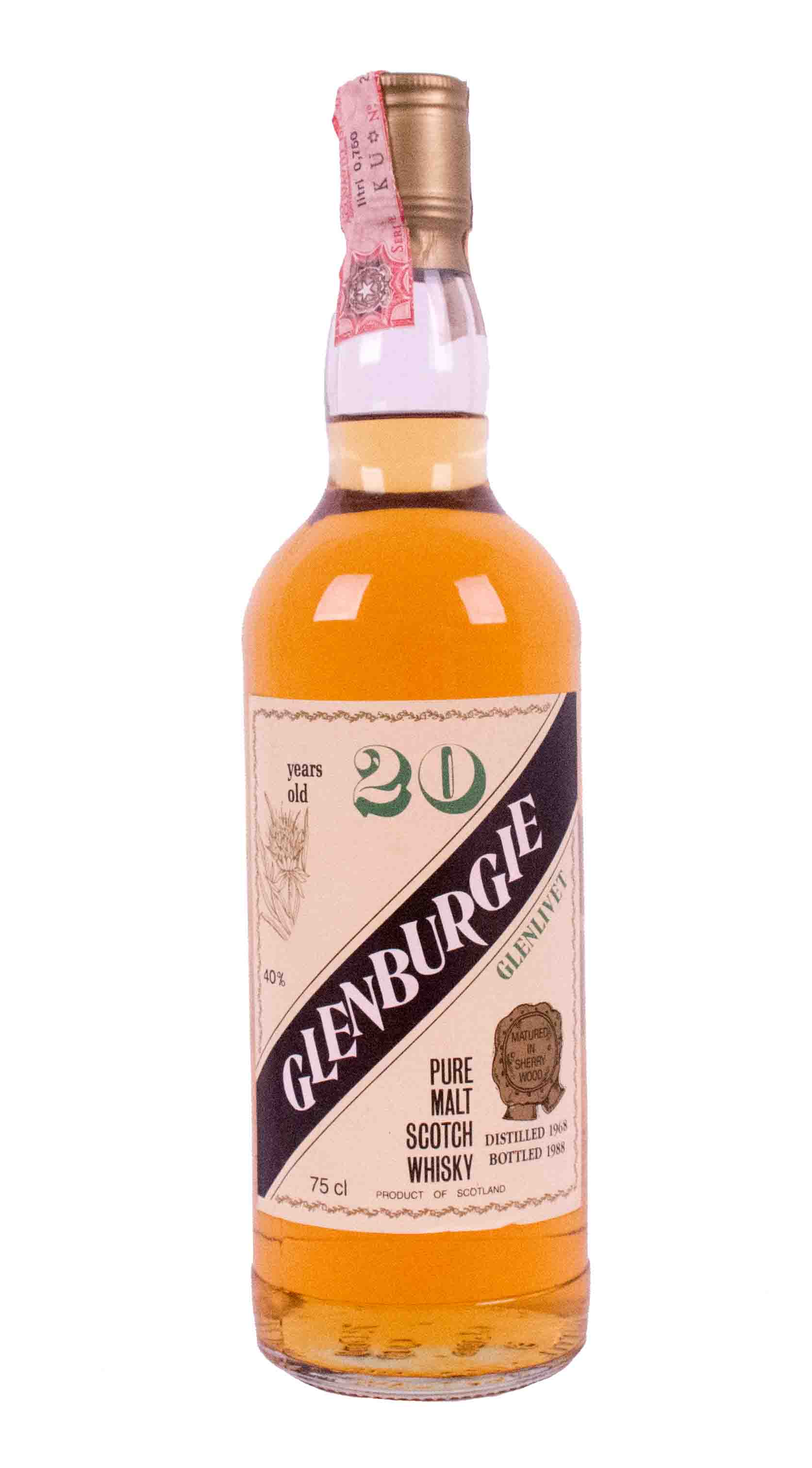 Glenburgie 20 years old Glenlivet Pure Malt Scotch Whisky Distilled 1968 bottled 1988