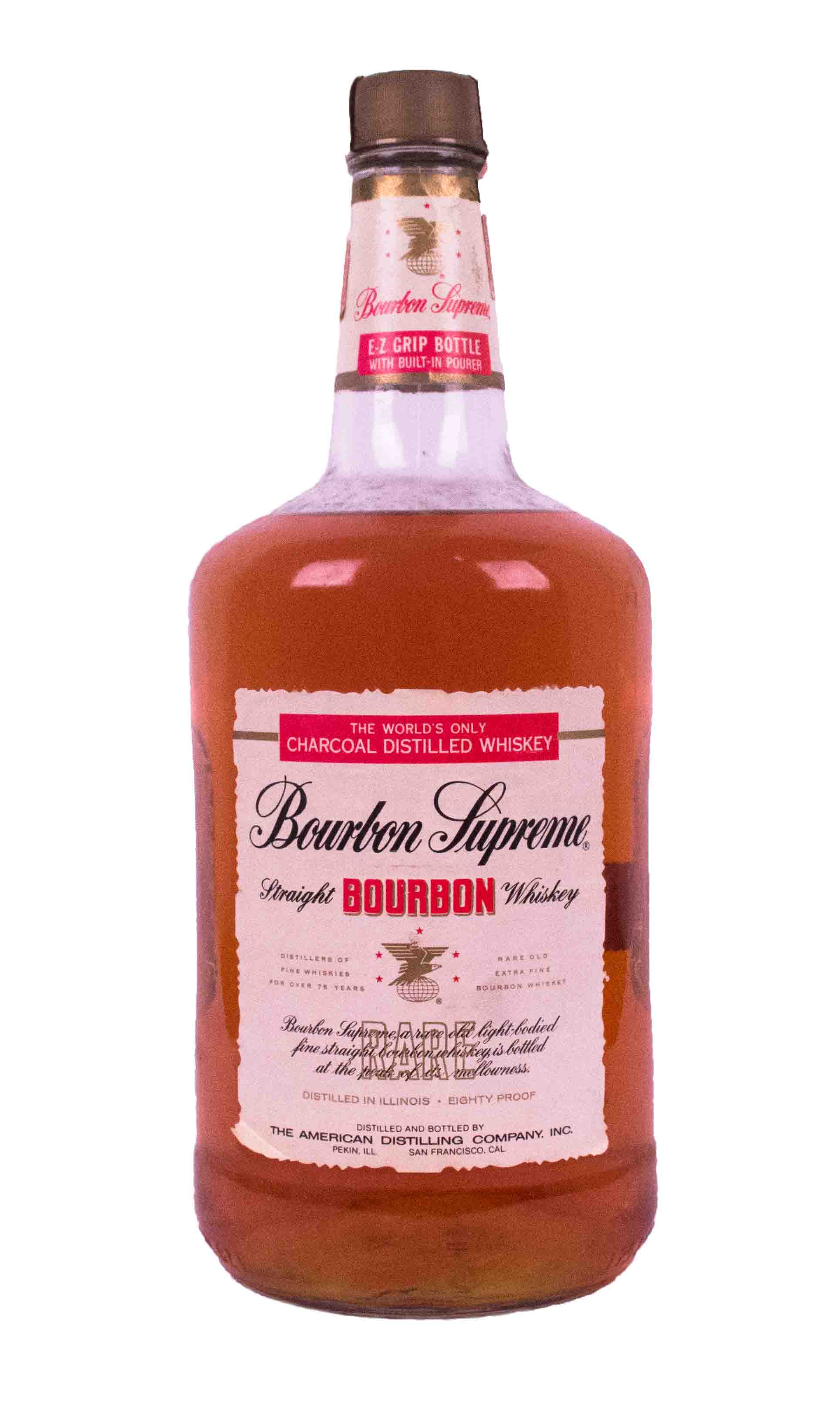 The American Distilling Company, Supreme Straight Bourbon Whiskey Rare, "The world only Charcoal Distilled Whiskey "