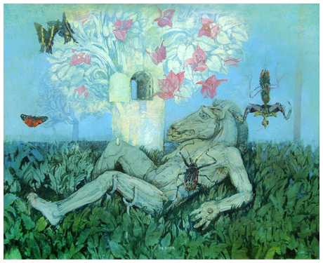 RAFFAELE DE ROSA Podenzana 1940 Senza titolo Olio su tela 50 x 60. Firma in b. al c.; sul verso timbri “R. Bulleri, Livorno”. B.A.: 200