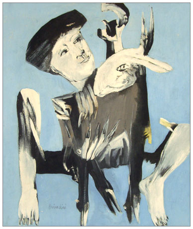 REMO BRINDISI Roma 1918 – Milano 1996 Senza titolo 1962 Olio su tela 60 x 50. Firma in b. a s.; sul verso timbro di autentica con firme, tecnica e misure + timbro parzialmente leggibile. B.A.: 950