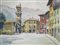 Piero Coelli (1893-1980) Veduta di Piazza Filzi a Borgo Sacco firma e data in basso a sinistra acquerello su cartoncino cm 54x42 ca eseguito nel 1972