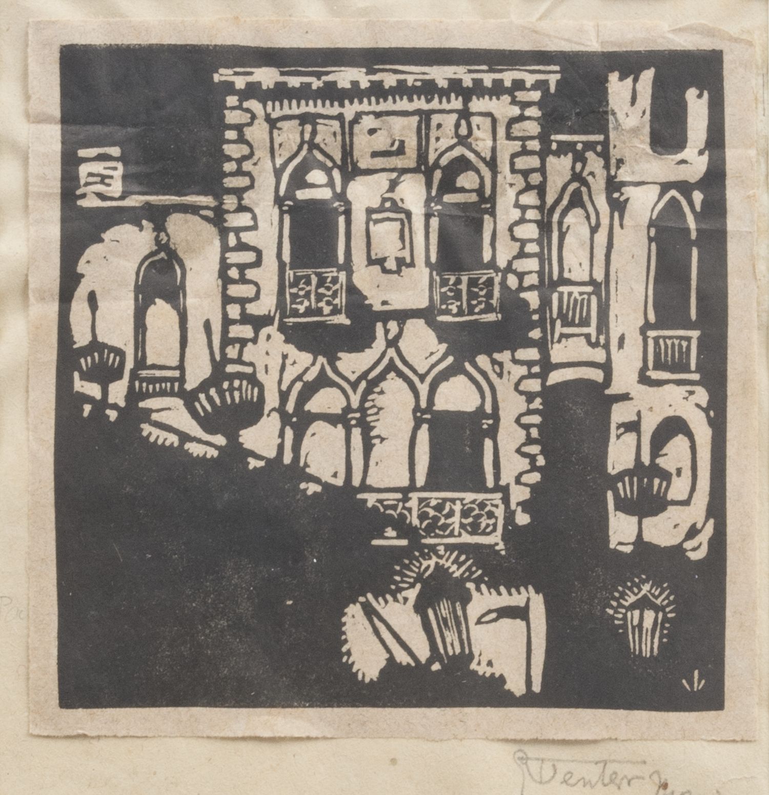 Girogio Wenter Marini (1890-1973) Venezia siglato in lastra in basso a destra; firmato in basso a destra xilografia su carta applicata su carta cm 17x16,5