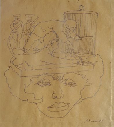 Mino Maccari (Siena, 1898 - Roma, 1989) FIGURA Matita su carta, cm. 21x23,2...