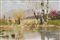 Luigi Vicentini (1901-1970) Paesaggio lacustre firma in basso a destra olio...