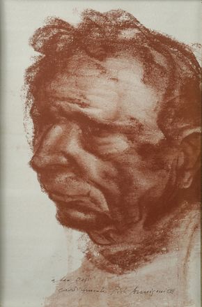 Pietro Annigoni (Milano, 1910 - Firenze, 1988) VOLTO Sanguigna su carta, cm. 28,5x19,5 Firma e dedica in basso a destra.