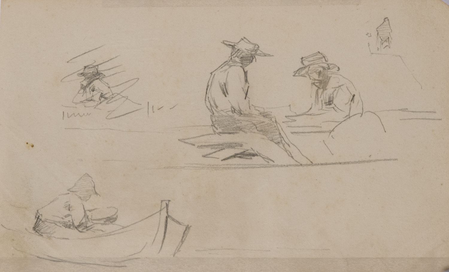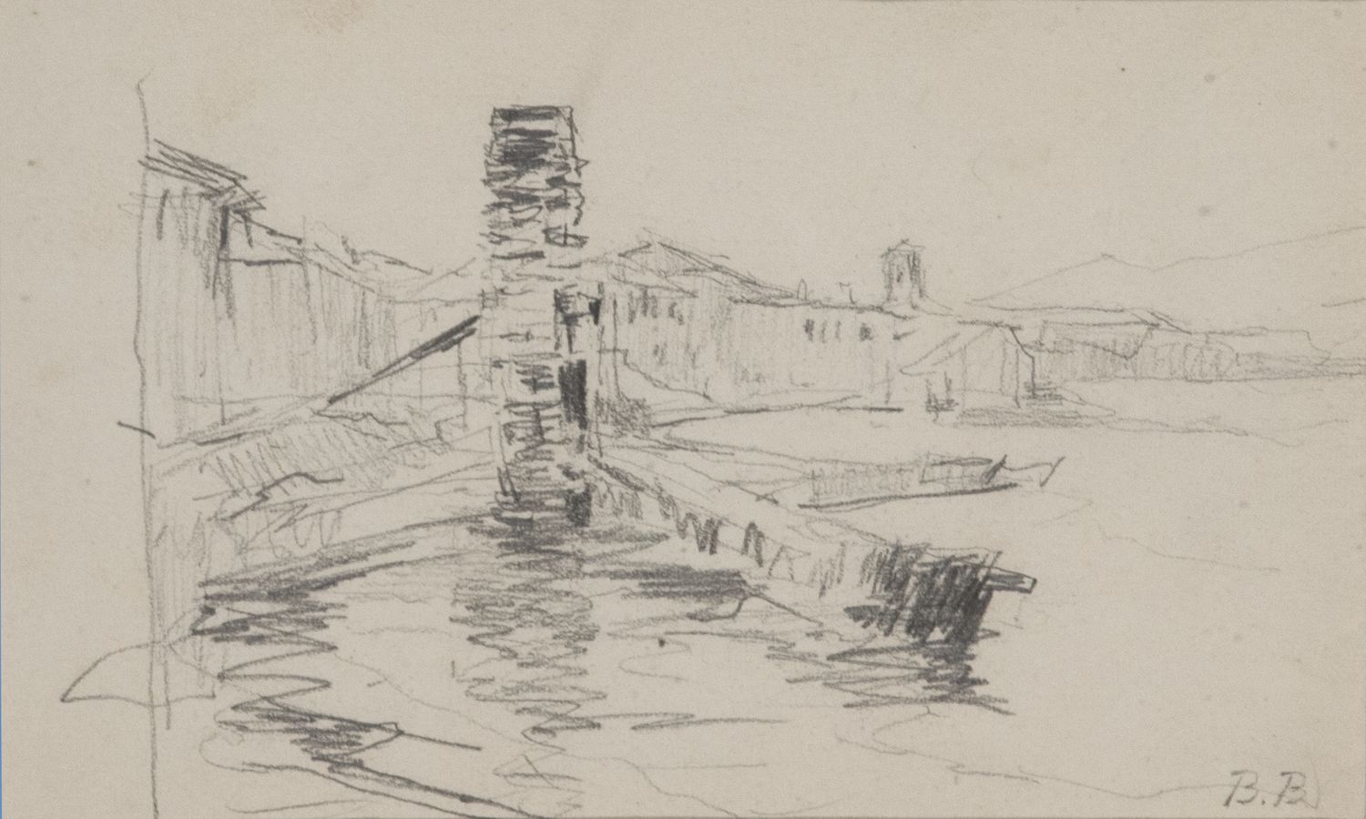 Bartolomeo Bezzi (1851-1923) Scorcio veronese (mulini a san Zeno, Verona) sul retro studio di pescatori sigla in basso a destra matita su carta cm 9x15 eseguito tra il 1880-1900 ca