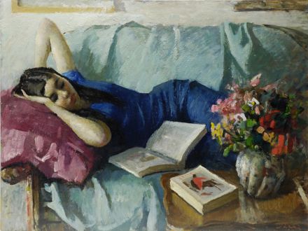 Giulio Salti (Barberino di Mugello, 1899 - Firenze, 1987) SIESTA Olio su faesite, cm. 60x80 Firma in basso a destra. Sul verso: firma e titolo.