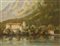 Mario Merlini (secolo XX) Paesaggio lacustre firma in basso a destra olio su masonite cm 40x50
