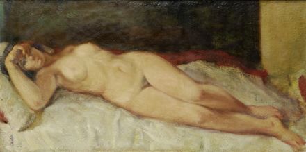 Giulio Salti (Barberino di Mugello, 1899 - Firenze, 1987) NUDO, 1971 Olio su tela, cm. 50x100 Sul verso: etichetta Centro Nazionale di documentazione dell’arte contemporanea Firenze, 1971.
