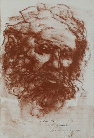 Pietro Annigoni (Milano, 1910 - Firenze, 1988) VOLTO sanguigna su carta, cm. 28,5x19,5 Firma e dedica in basso a destra.