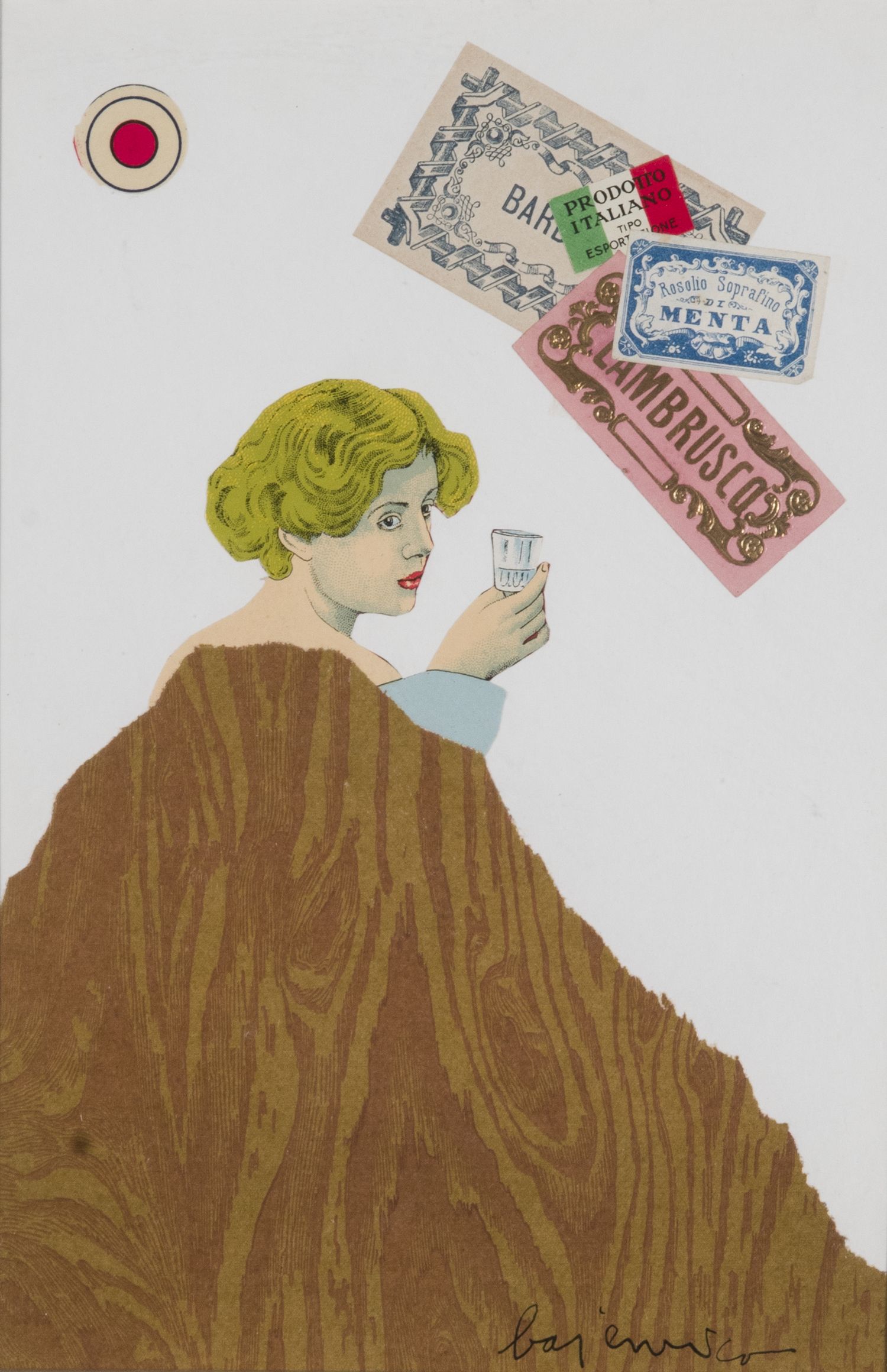 Enrico Baj (1924-2003) Rosolio di menta firma in basso a destra collage cm...