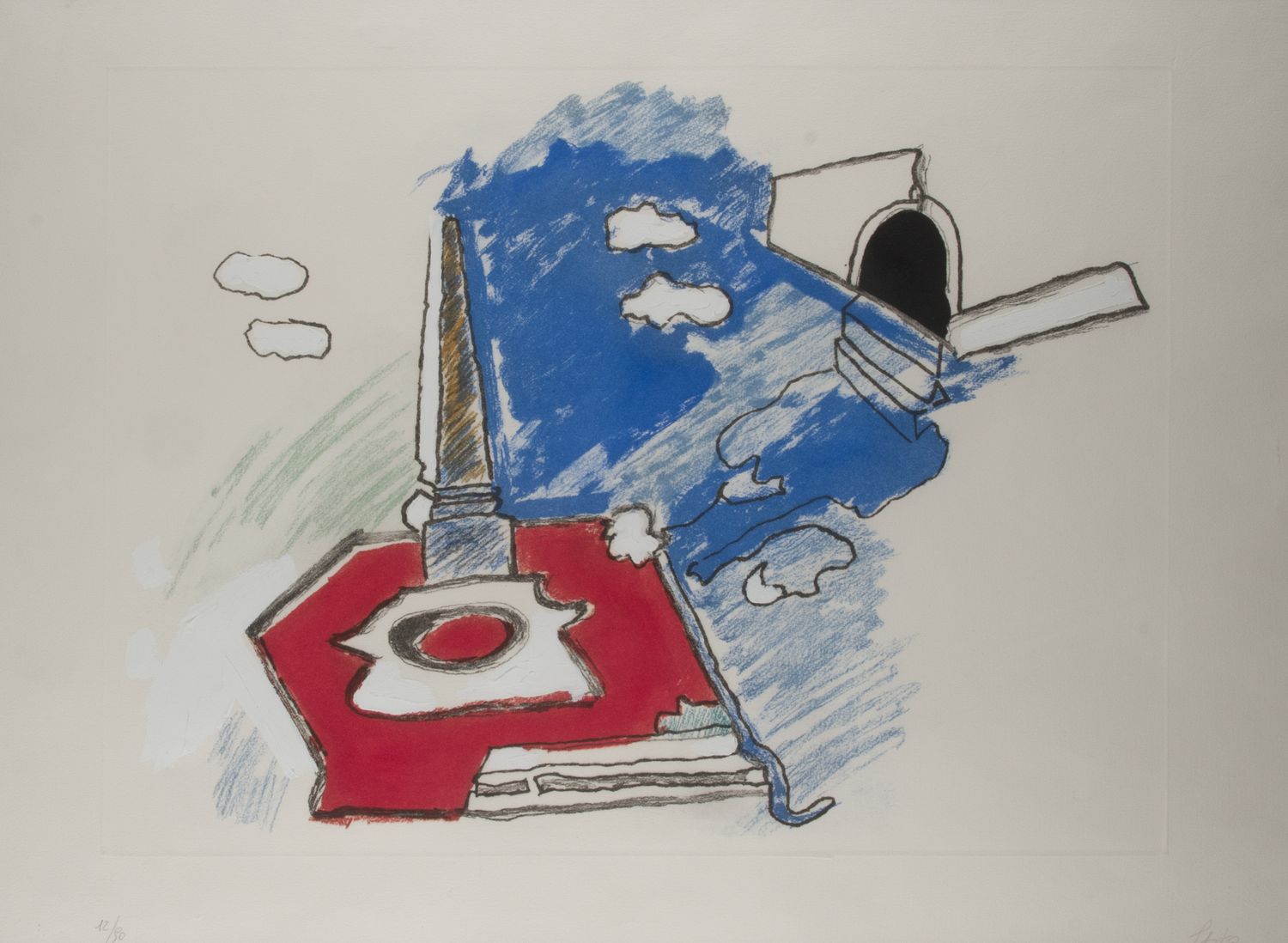 Tano Festa (1938-1988) Obelisco con nuvole firma in basso a destra; numerato 12/90 acquaforte ritoccata a mano cm 45x60,5