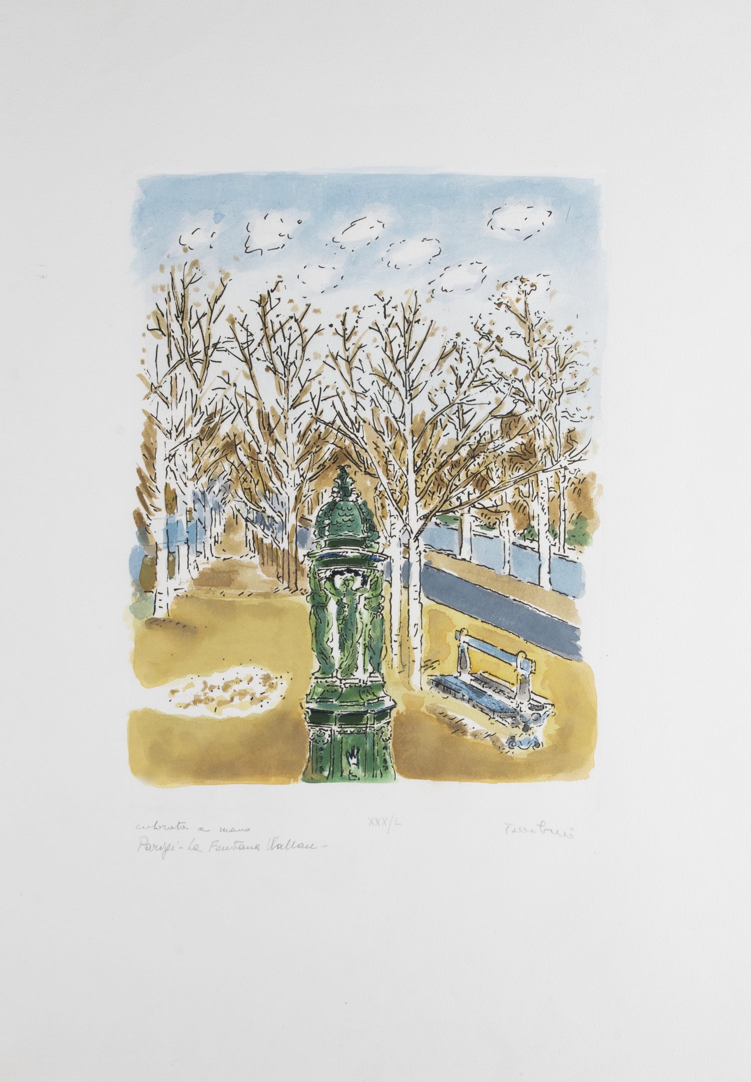 Orfeo Tamburi (1910-1984) Parigi, Fontana Wallace firma in basso a destra; titolo in basso a sinistra; numerata XXX/L acquaforte acquerellata a mano cm 70x50