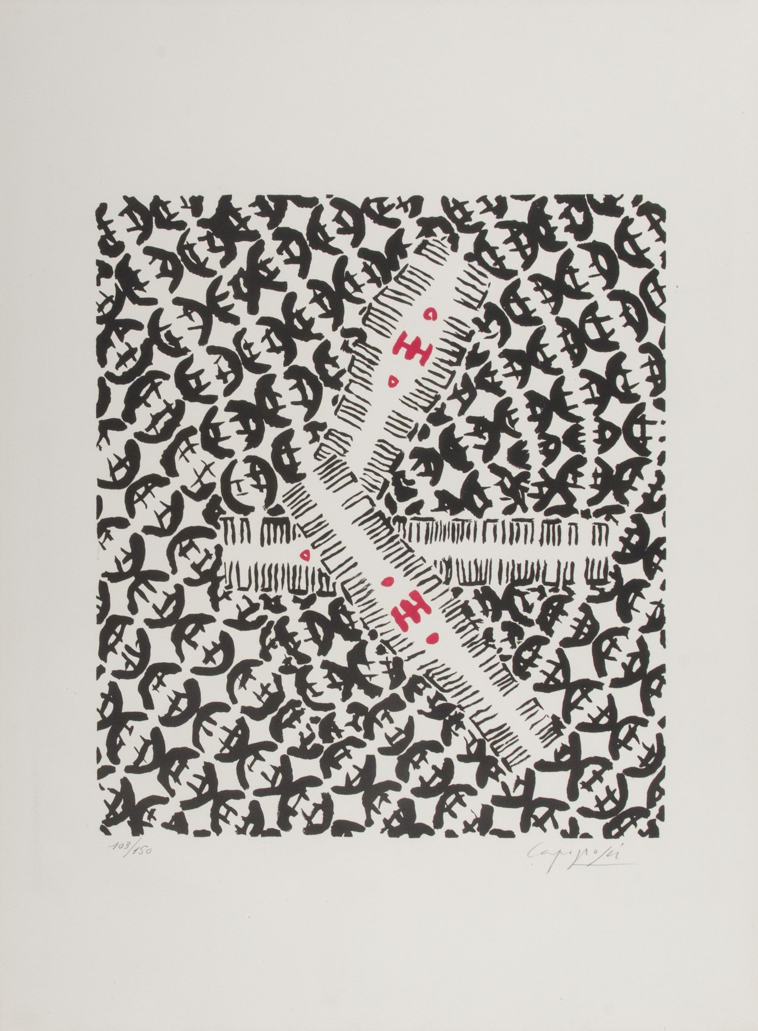 Giuseppe Capogrossi (1900-1972) Superficie CP/970 firma in basso a destra; numerata 103/150 litografia a due colori cm 65,5x47,5 eseguita nel 1958, Edizioni del Cavallino, Venezia Bibliografia: von Hase-Schmundt, U., Capogrossi. Das graphische Werk. Erker-Verlag Ed., St. Gallen 1982, p. 32, ill. 23