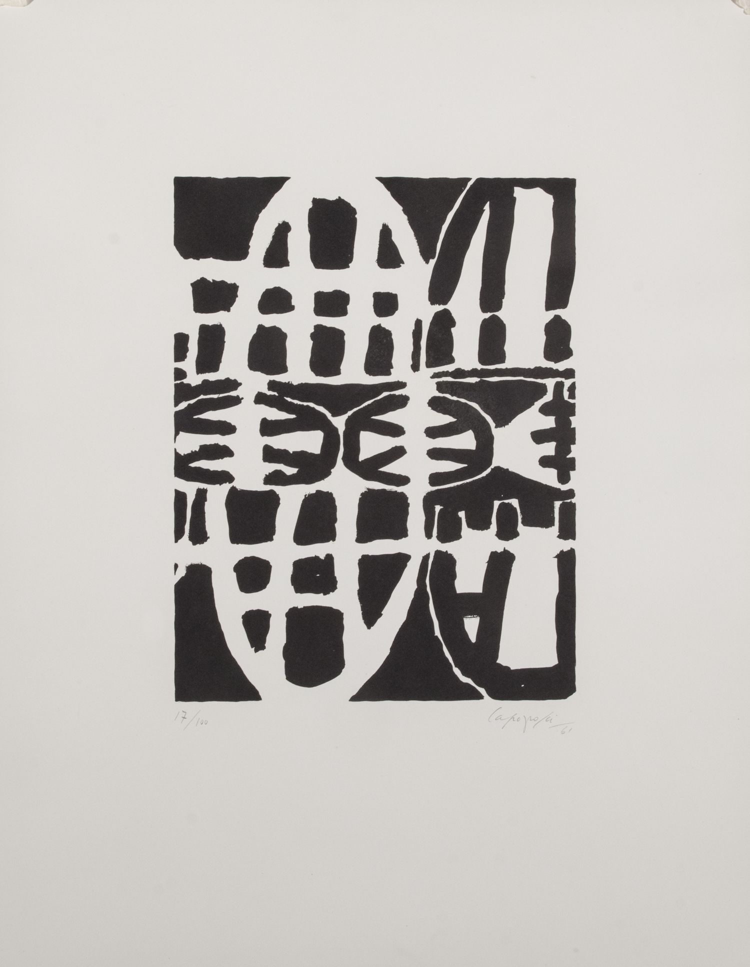 Giuseppe Capogrossi (1900-1972) Composizione firma e data in basso a destra; numerata 17/100 zincografia cm 51,1x40,4 eseguita nel 1961, Edizioni del Cavallino, Venezia Bibliografia: von Hase-Schmundt, U., Capogrossi. Das graphische Werk. Erker-Verlag Ed., St. Gallen 1982, p. 42, ill. 33