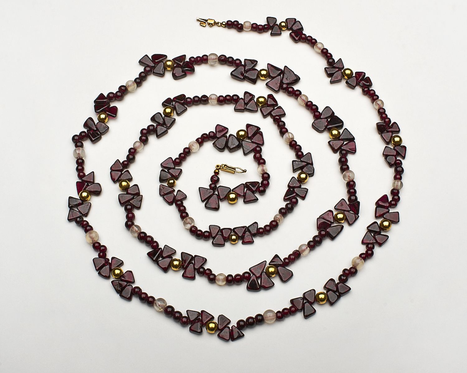 Collana in granati, quarzo ialino e oro con fermezza e separatori in oro