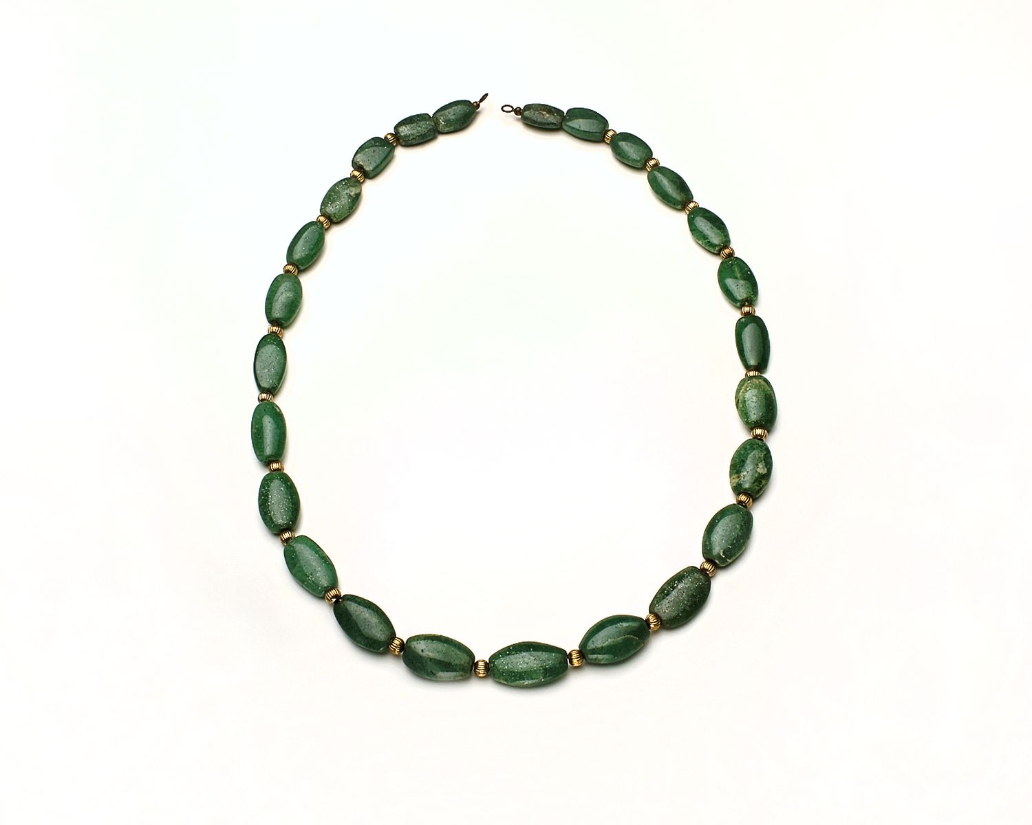 Collana in nefrite separatori in metallo dorato lungh. cm 60 g 74 (mancante di fermezza)