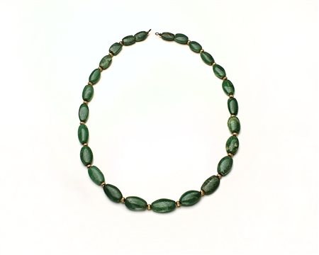 Collana in nefrite separatori in metallo dorato lungh. cm 60 g 74 (mancante...