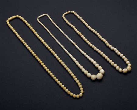 Precedente Lotto 172 Successivo Aste Dolomia - Via Santa Maria 26, 38068 Rovereto Asta N. 2 - Arte Antica e Moderna, Gioielli Sessione Unica - dal lotto 1 al lotto 216 sabato 7 maggio 2016 ore 15:30 (UTC +01:00) Serie di tre collane in avorio degradé Serie di tre collane in avorio degradé