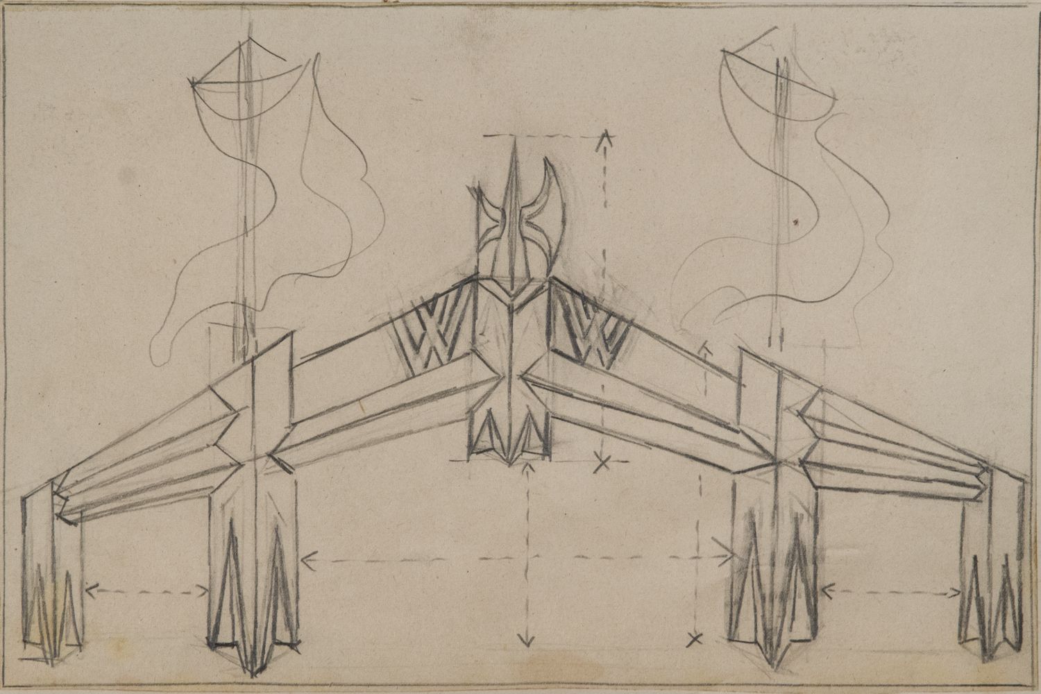 Fortunato Depero (1892-1960) Progetto per arco trionfale matita su carta cm 18,5x28,2 eseguito nel 1935 Opera registrata nel Catalogo Generale Ragionato delle Opere dell’Artista con n. FD-4095-DIS