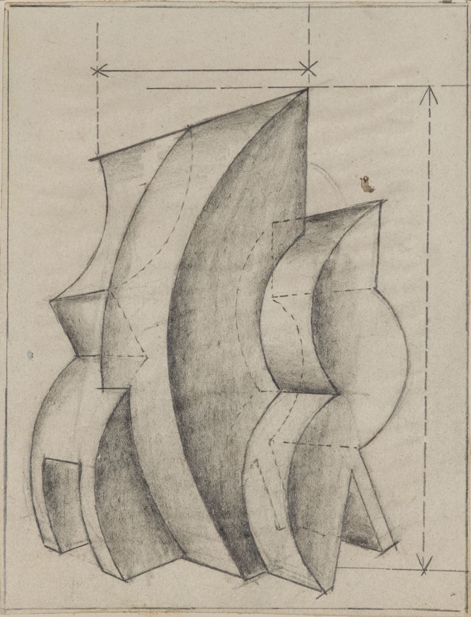 Fortunato Depero (1892-1960) Padiglione a compenetrazione di sezioni di solidi curvilinei matita su carta cm 18,7x14,1 eseguito nel 1924-1925 Opera registrata nel Catalogo Generale Ragionato delle Opere dell’Artista con n. FD-4074-DIS