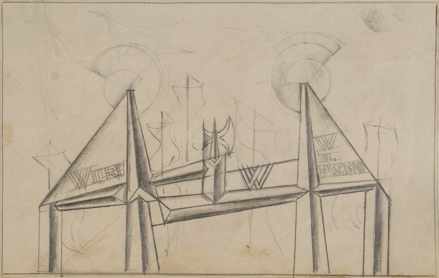 Fortunato Depero (1892-1960) Progetto per arco trionfale matita su carta cm 20x31,8 eseguito nel 1935 ca Opera registrata nel Catalogo Generale Ragionato delle Opere dell’Artista con n. FD-4099-DIS