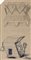 Fortunato Depero (1892-1960) Studio per due padiglioni, uno con lanterne matita e inchiostro blu su carta cm 26x13,4 eseguito nel 1922-1923 Opera registrata nel Catalogo Generale Ragionato delle Opere dell’Artista con n. FD-4087-DIS Alcuni particolari (come le lanterne) e la forma del tetto del padiglione in alto potrebbero far collocare questi due progetti nel periodo a ridosso del Cabaret del Diavolo.