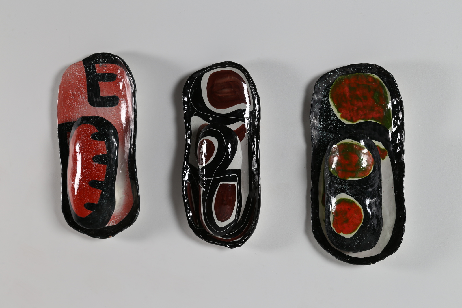 BELLOTTI GERMANO Tre appliques in maiolica decorata . ceramica. Cm 21,00 x 42,00 x 9,00. anni 50