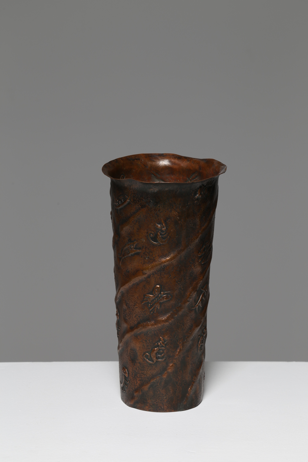 BRAGALINI ANGELO (n. 1913) Vaso in rame inciso e cesellato. Firma alla base,...
