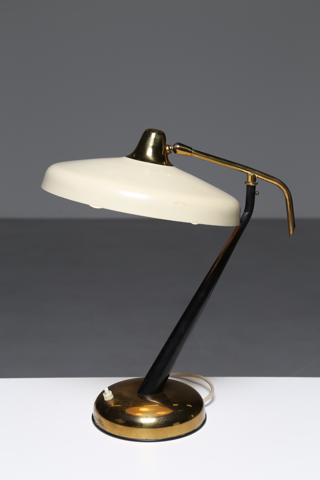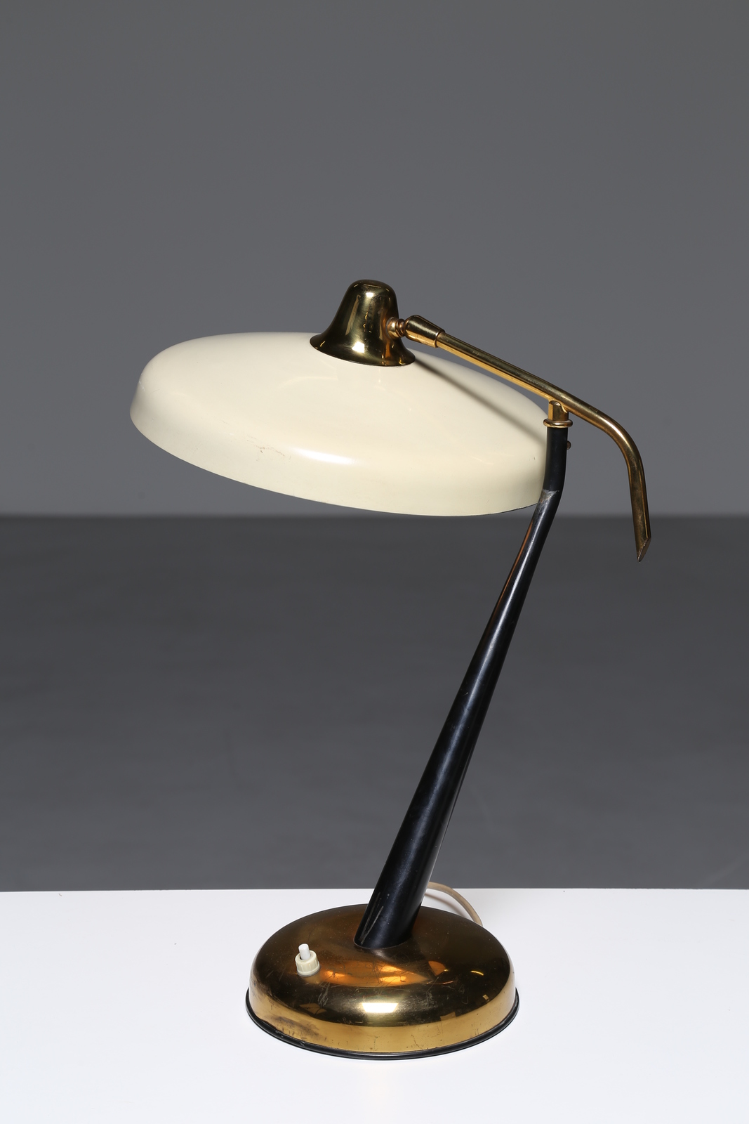TORLASCO OSCAR Lampada da tavolo mod. 331 in ottone e metallo laccato, per Lumi , 1950 Bib. Rivista dell’arredamento gennaio 1963 . -. Cm 42,00 x 40,00 x 31,00. anni 50