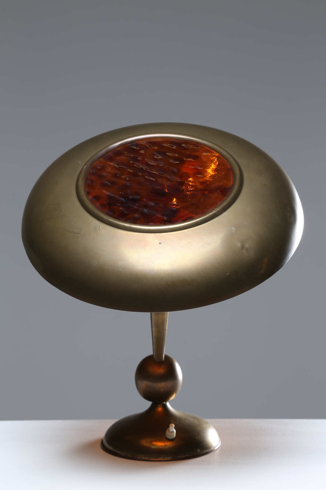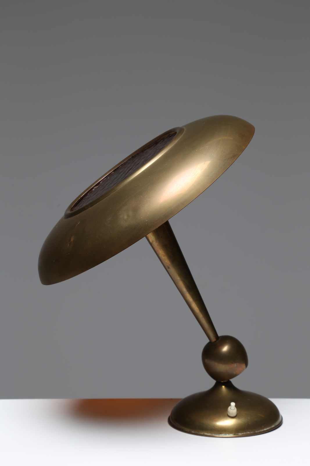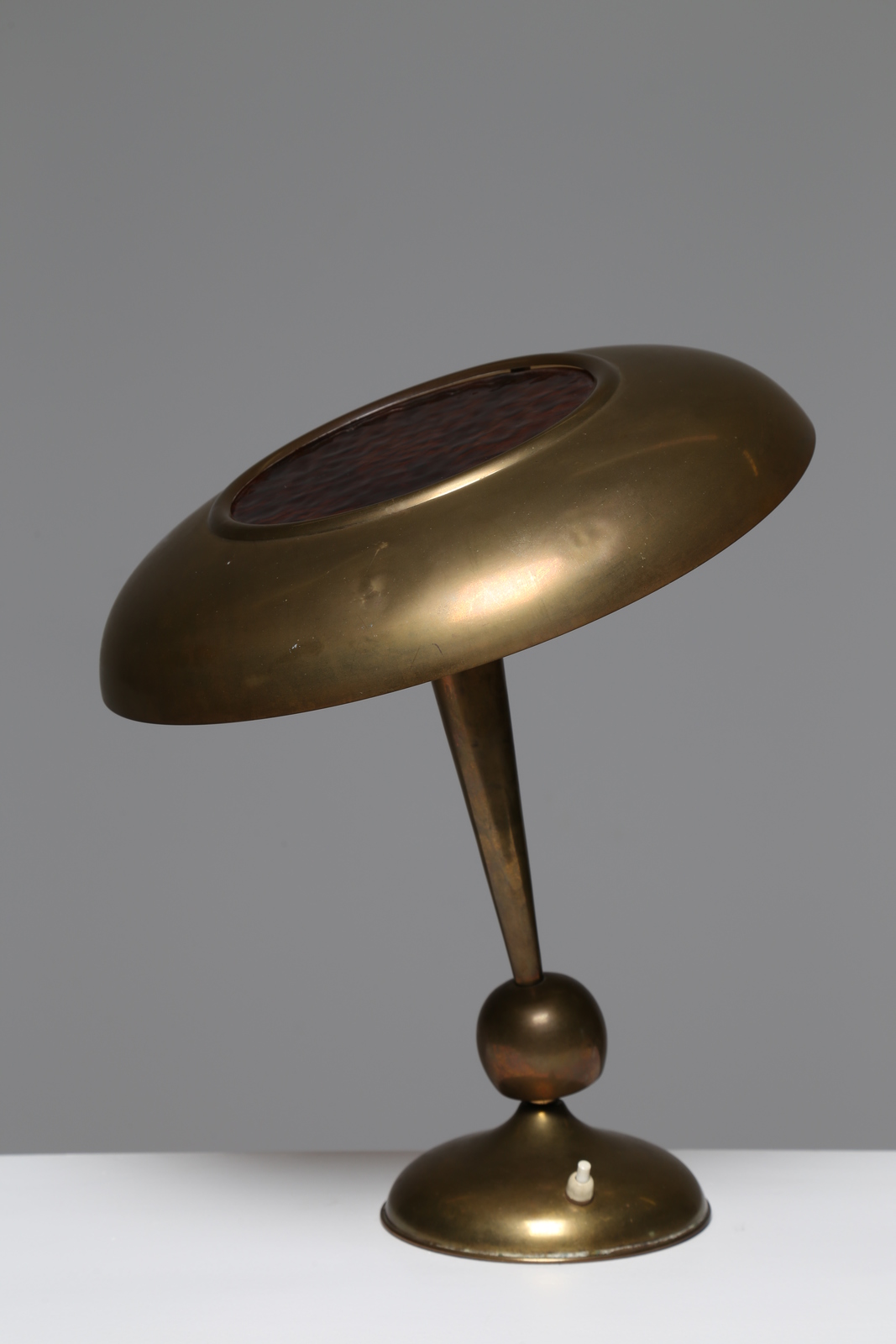 TORLASCO OSCAR Lampada da tavolo orientabile in ottone e vetro. Prod. Lumi, Italia, 1950 . . Ottone e vetro. Cm 35,00 x 41,00. anni 50