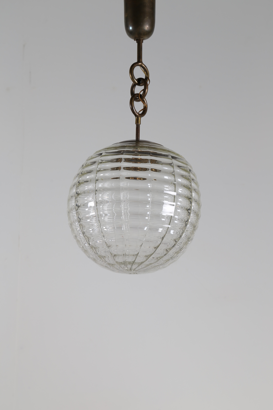 Lotto 91 | VENINI Lampadario con boccia in vetro trasparente cordonato e struttura in...