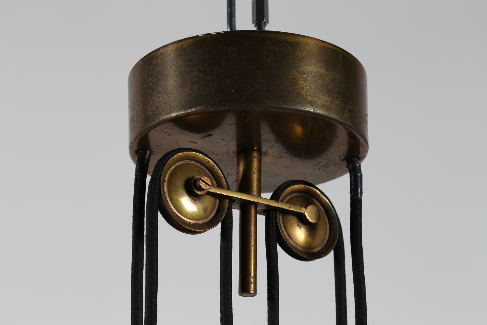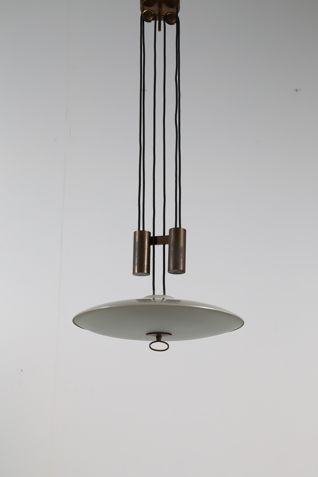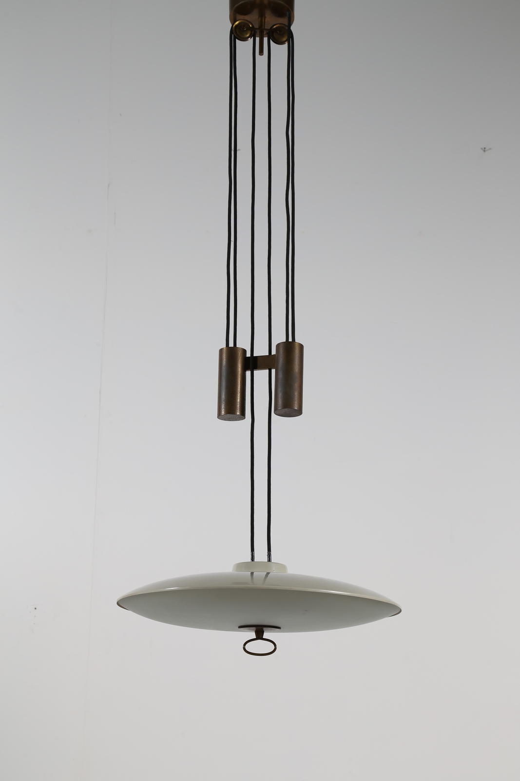 INGRAND MAX (1908 - 1969) Lampada a saliscendi con montatura in ottone, vetro...