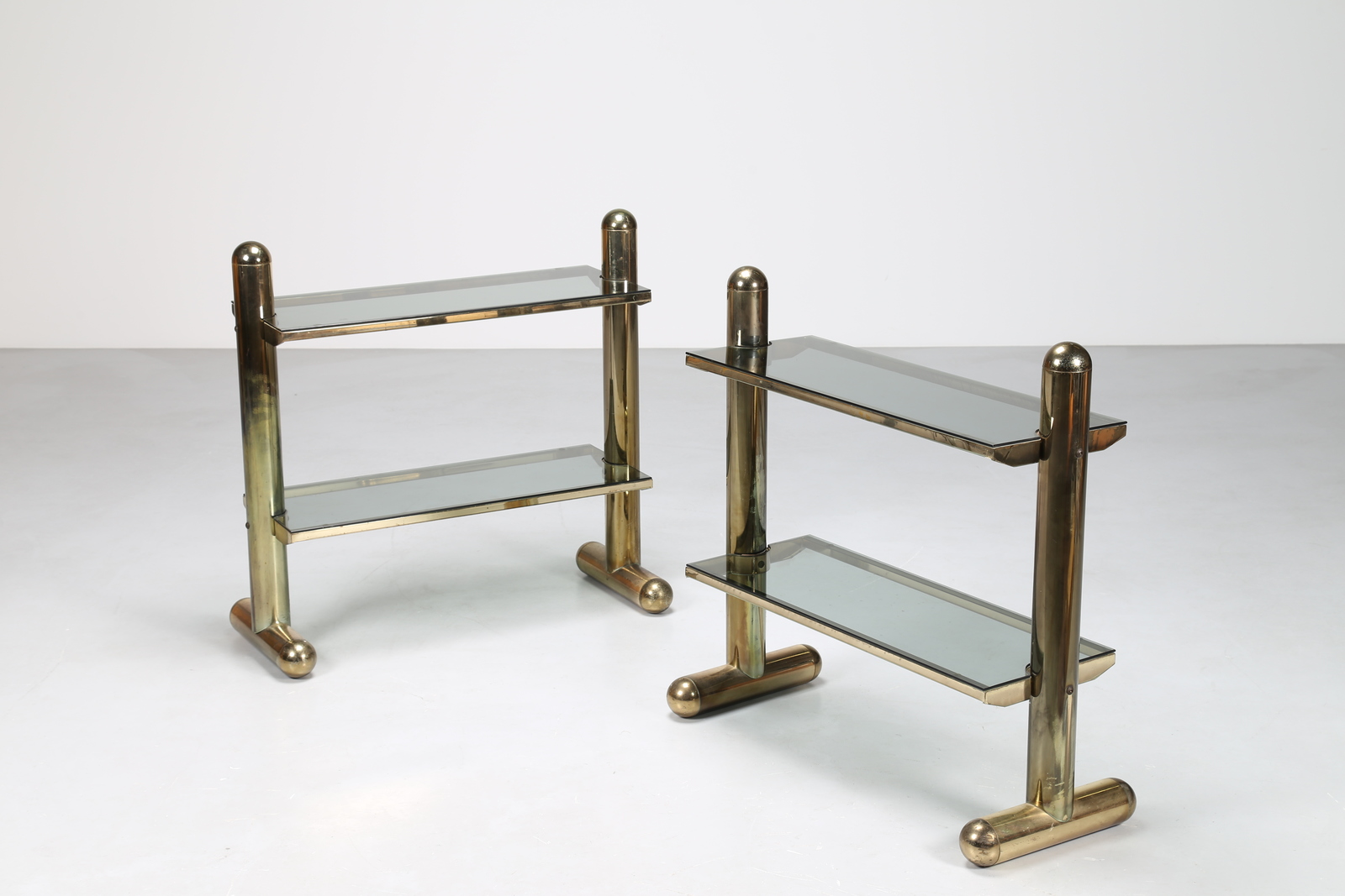 ANGOLO METAL ARTE ROMA Coppia consolle in ottone e vetro, Roma 1970. Ottone e...