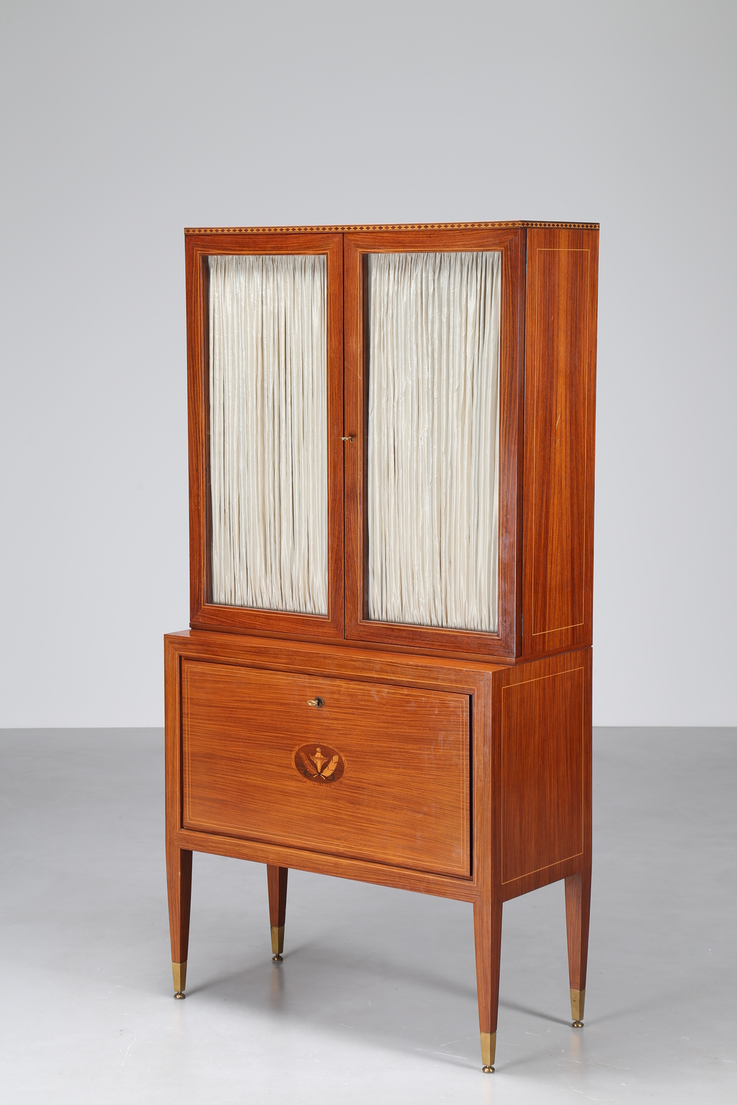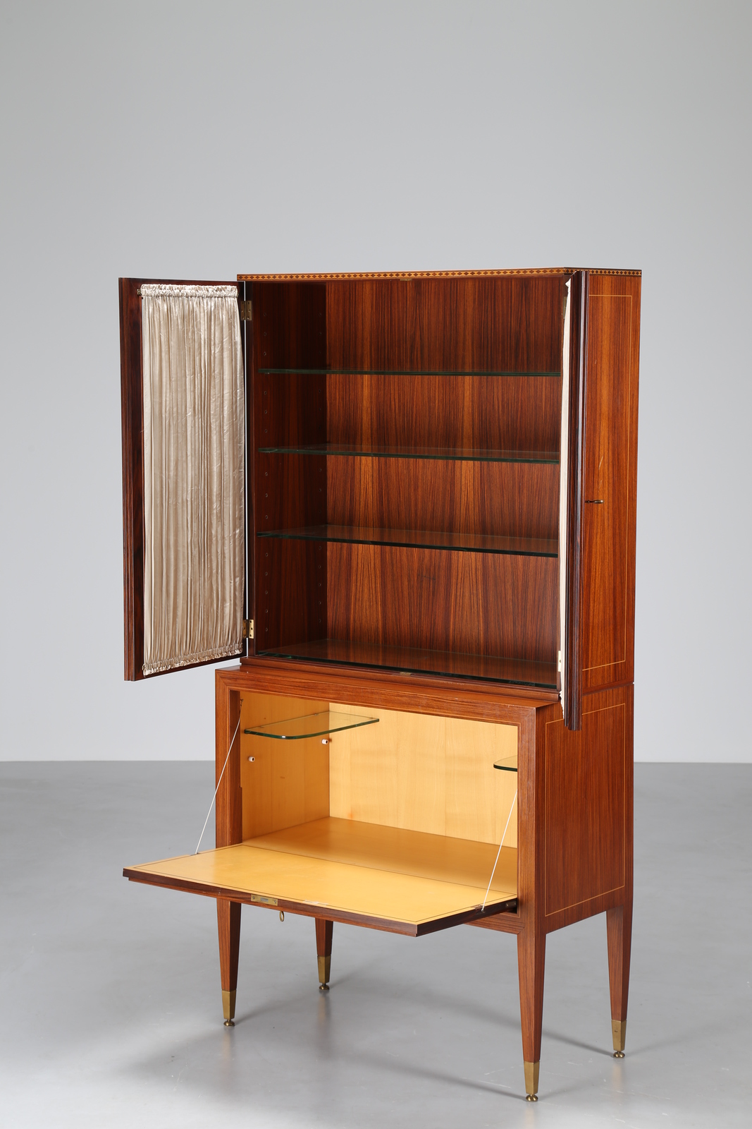 BUFFA PAOLO (1903 - 1970) Vetrina in legno di palissandro, vetro e puntali in ottone, 1950. Legno di palissandro, vetro e ottone. Cm 100,00 x 197,00 x 45,50.