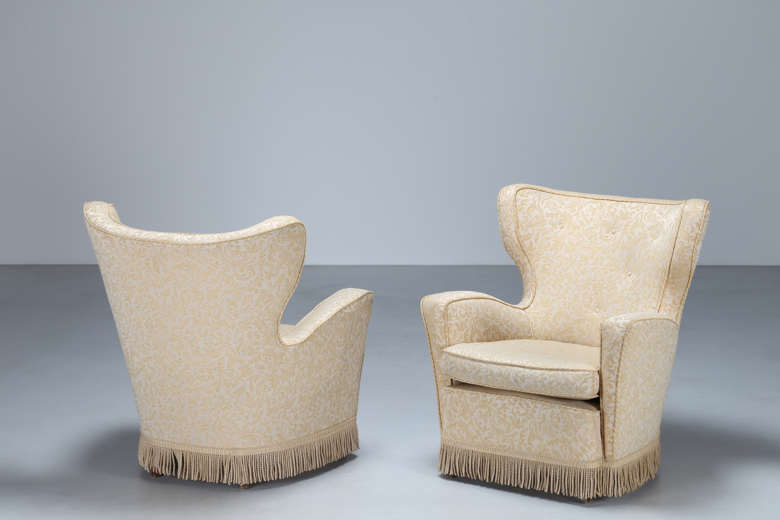 BUFFA PAOLO (1903 - 1970) Coppia poltrone legno tessuto, 1952. Tessuto e...