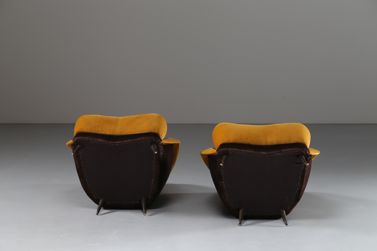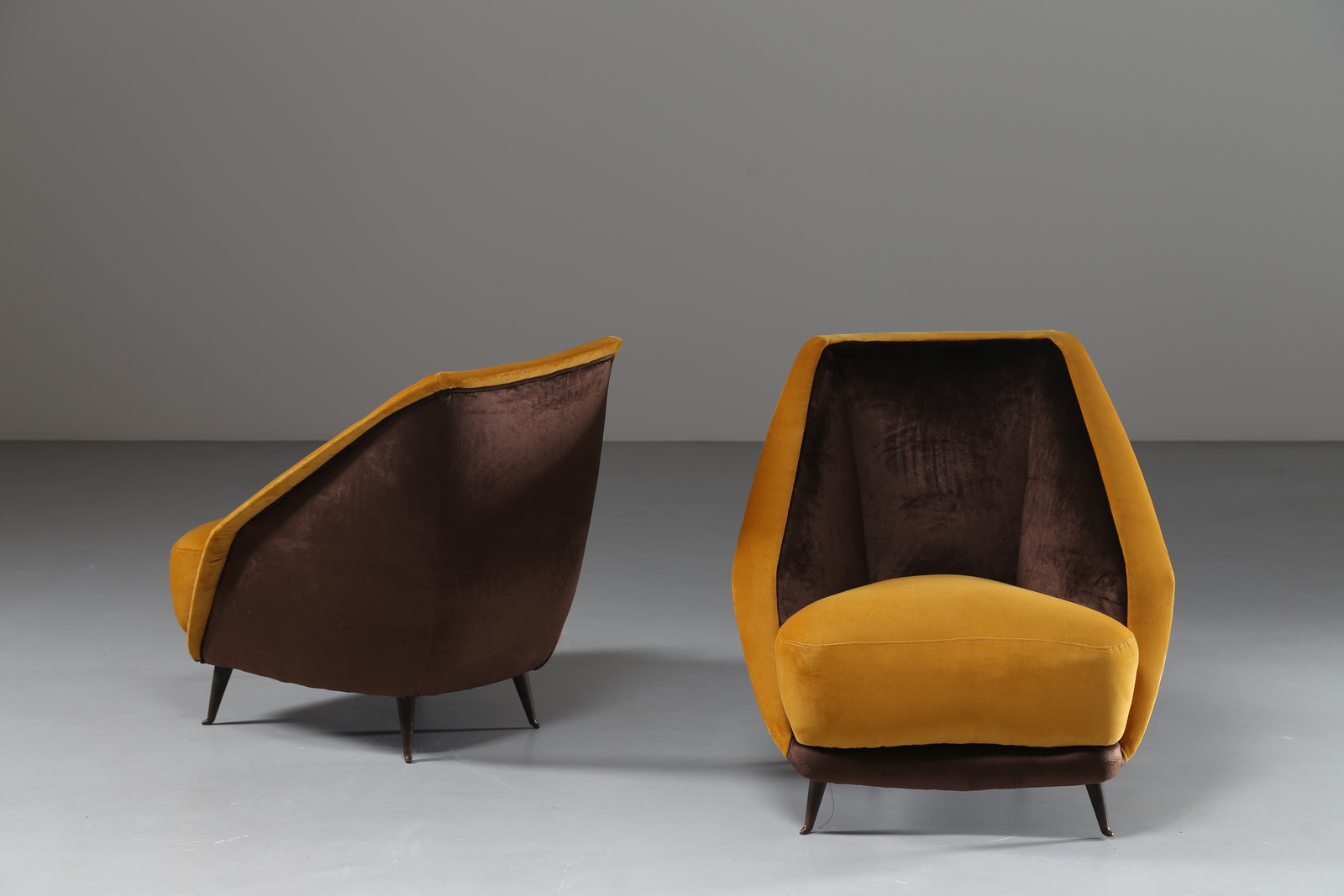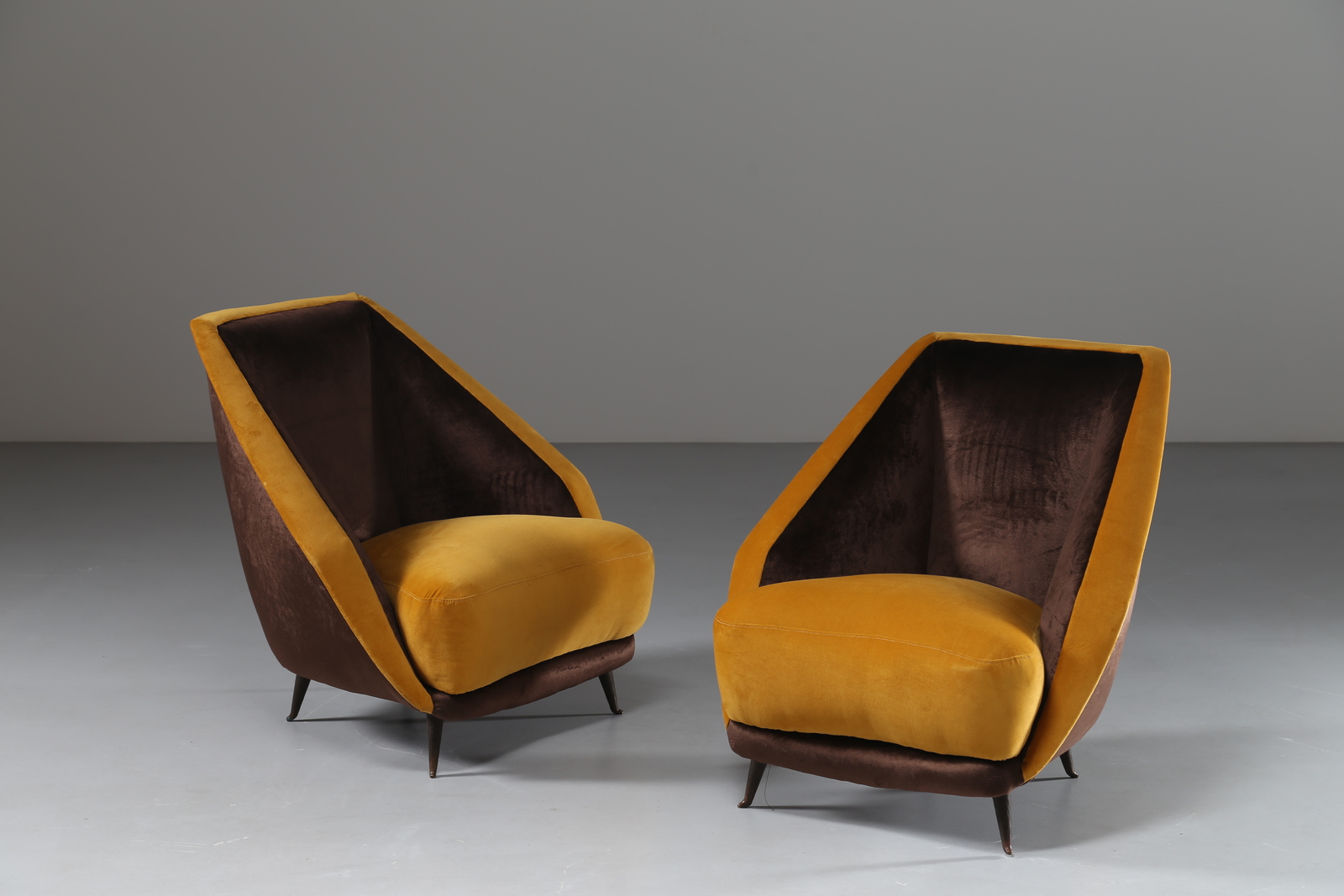 VERONESI GUGLIELMO Raro modello di poltrona, disegnato dall’autore e realizzato dai fratelli Pigoli di Cabiate, 1950. tessuto e ottone. Cm 72,00 x 72,00 x 76,00. anni 50
