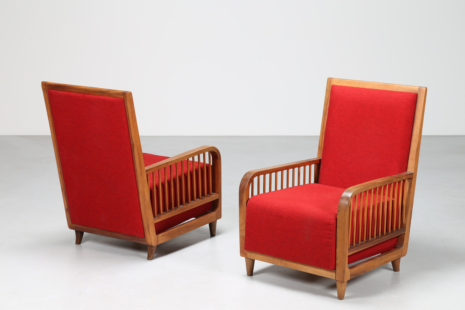 BUFFA PAOLO (1903 - 1970) Coppia poltrone in noce e tessuto, 1950. Tessuto e legno. Cm 64,00 x 94,00 x 75,00. anni 50