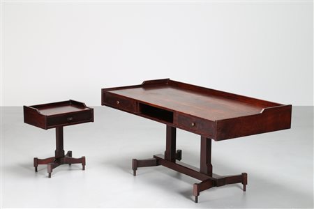 SALOCCHI CLAUDIO (1934 - 2009) Scrivania e comodino in legno di palissandro e...