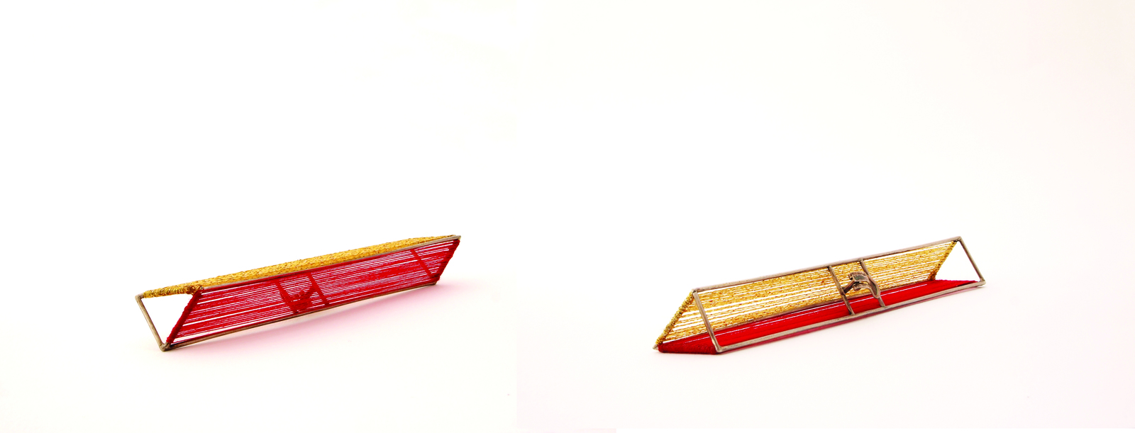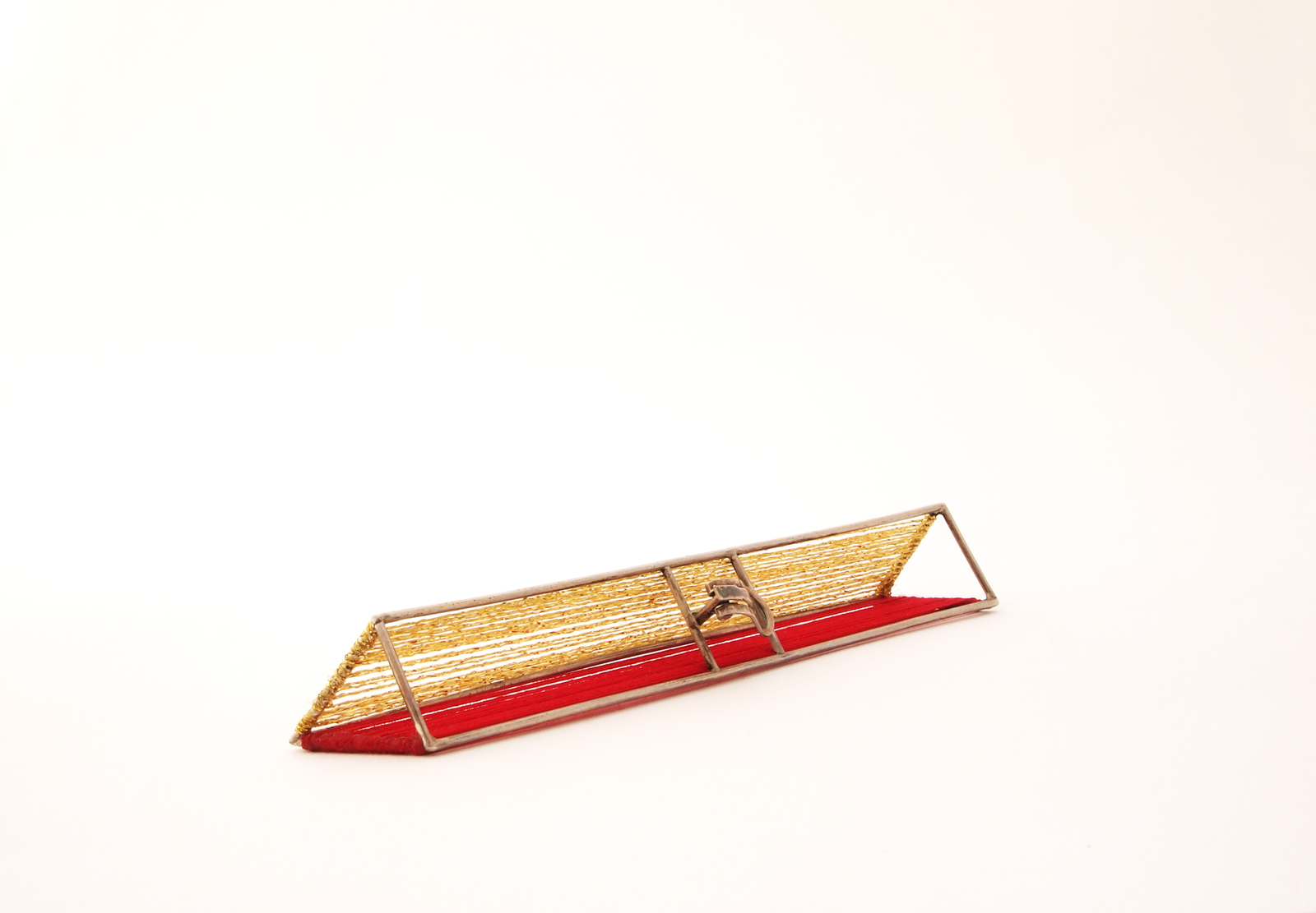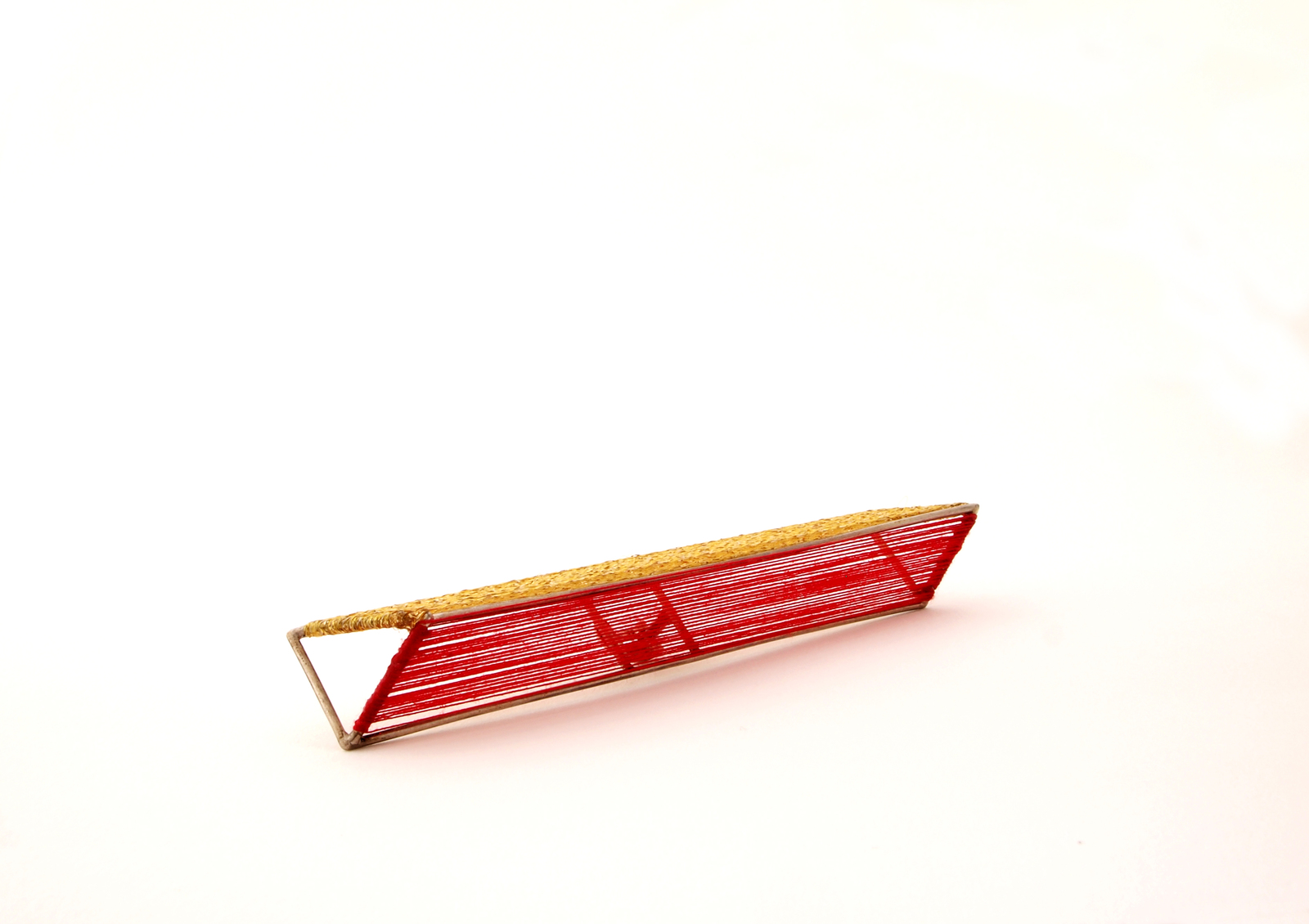 DI CIAULA FRANCESCA (n. 1960) Orecchino coll. G.Ferrè. 1984. Argento, nylon e lurex. Cm 1,80 x 10,00 x 1,50. Presentato al Modit di Milano, collezione primavera - estate 1985 Gianfranco Ferrè. Ordinati dallo stilista in serie di dieci, uno dei quali presente nella sua collezione privata.