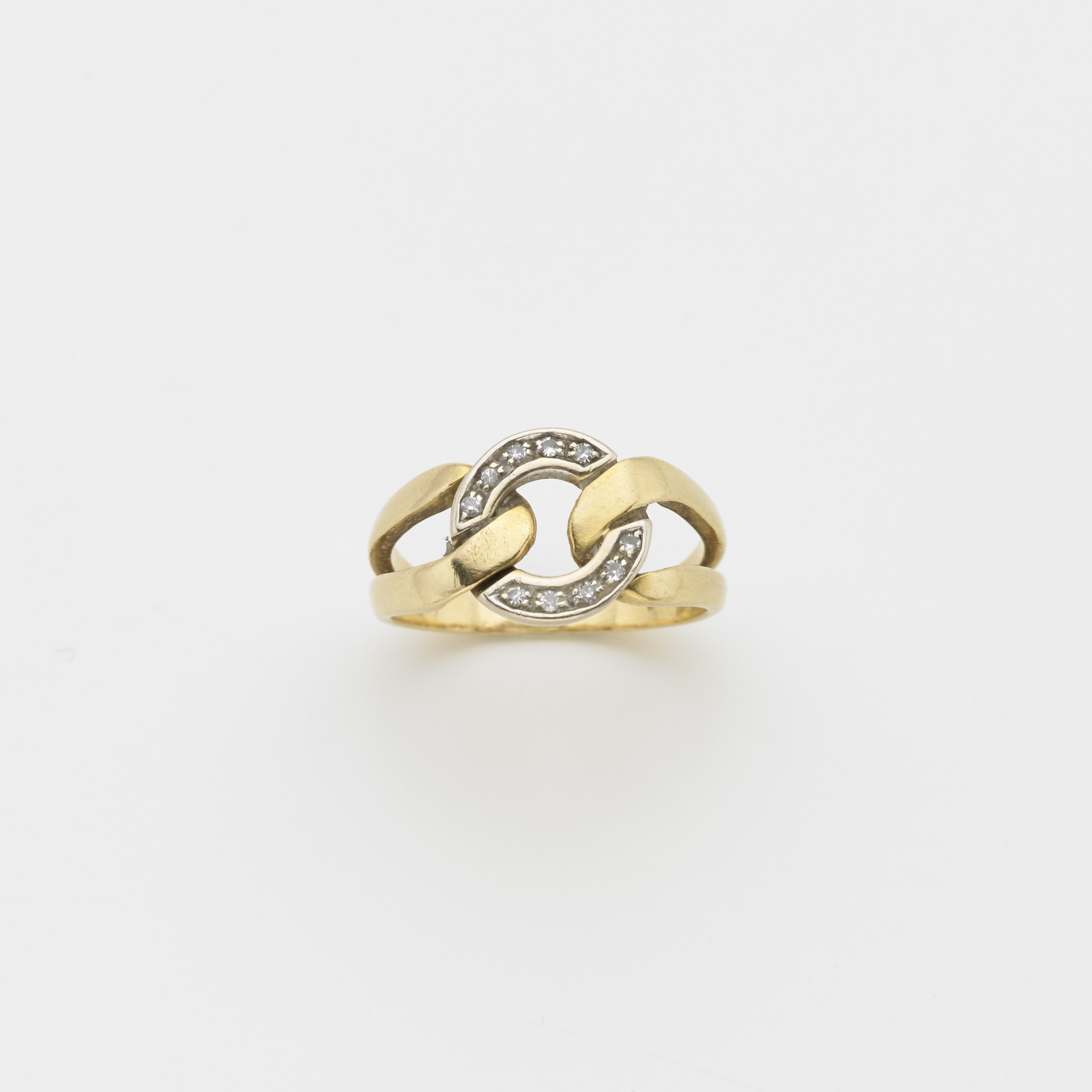 Anello in oro giallo e bianco con tondo centrale e diamanti g. 6,30 misura 19/59 Bi-coloured gold and diamond ring