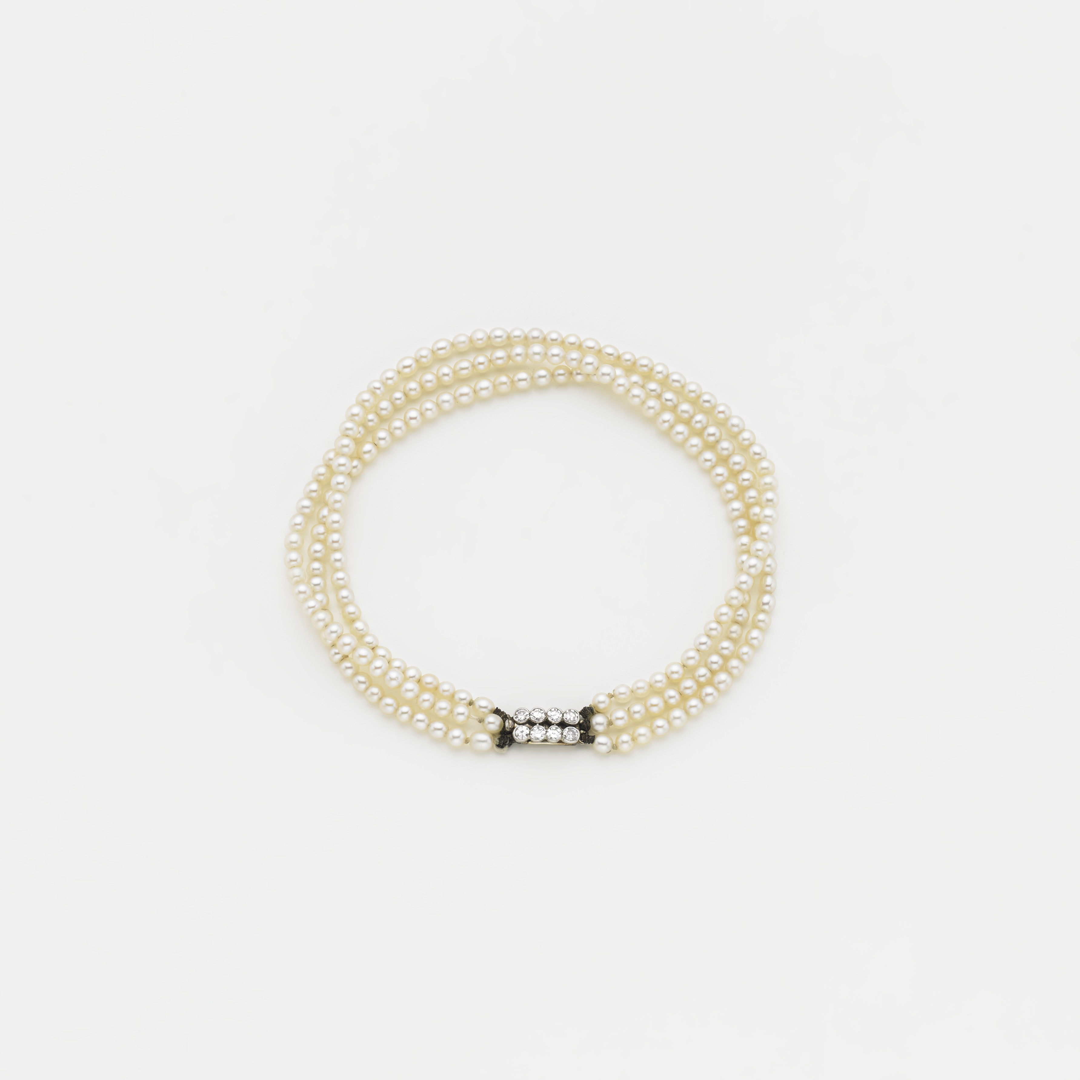 Lotto 41 | Bracciale a tre fili di piccole perle da mm.2,60 e chiusura in oro bianco e...