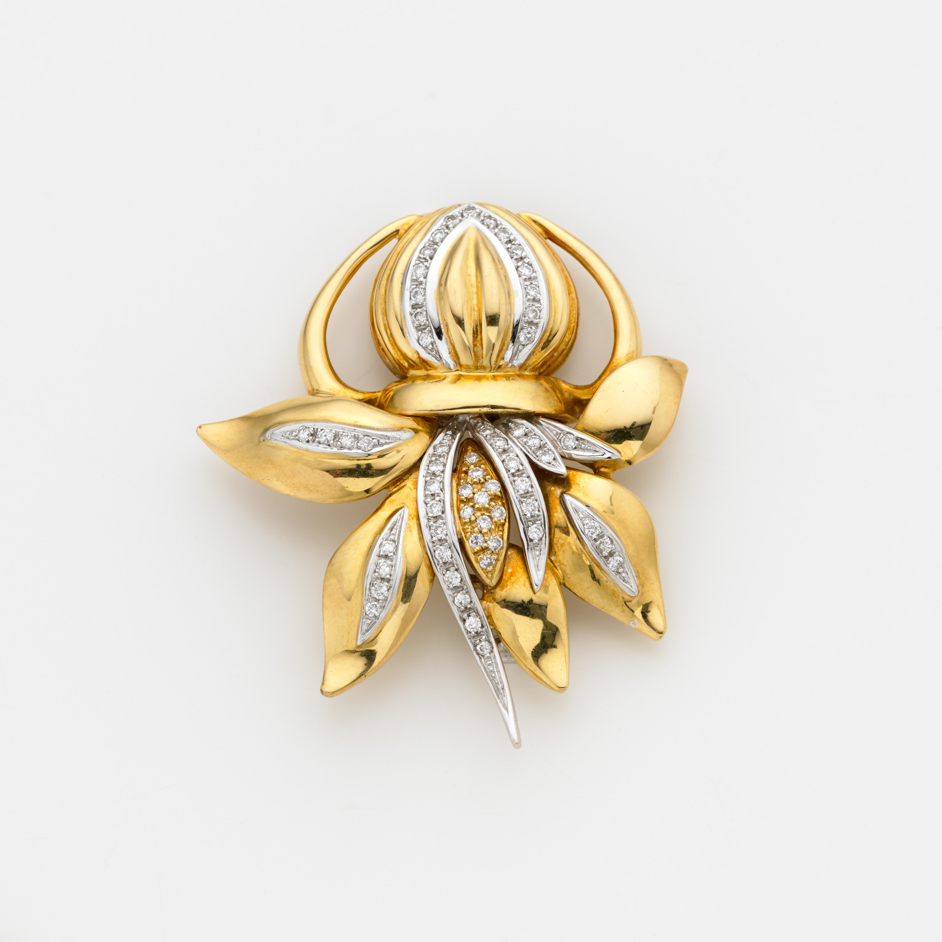 Spilla floreale in oro giallo e bianco con diamanti g. 17,60 Bi-coloured gold and diamond floral brooch