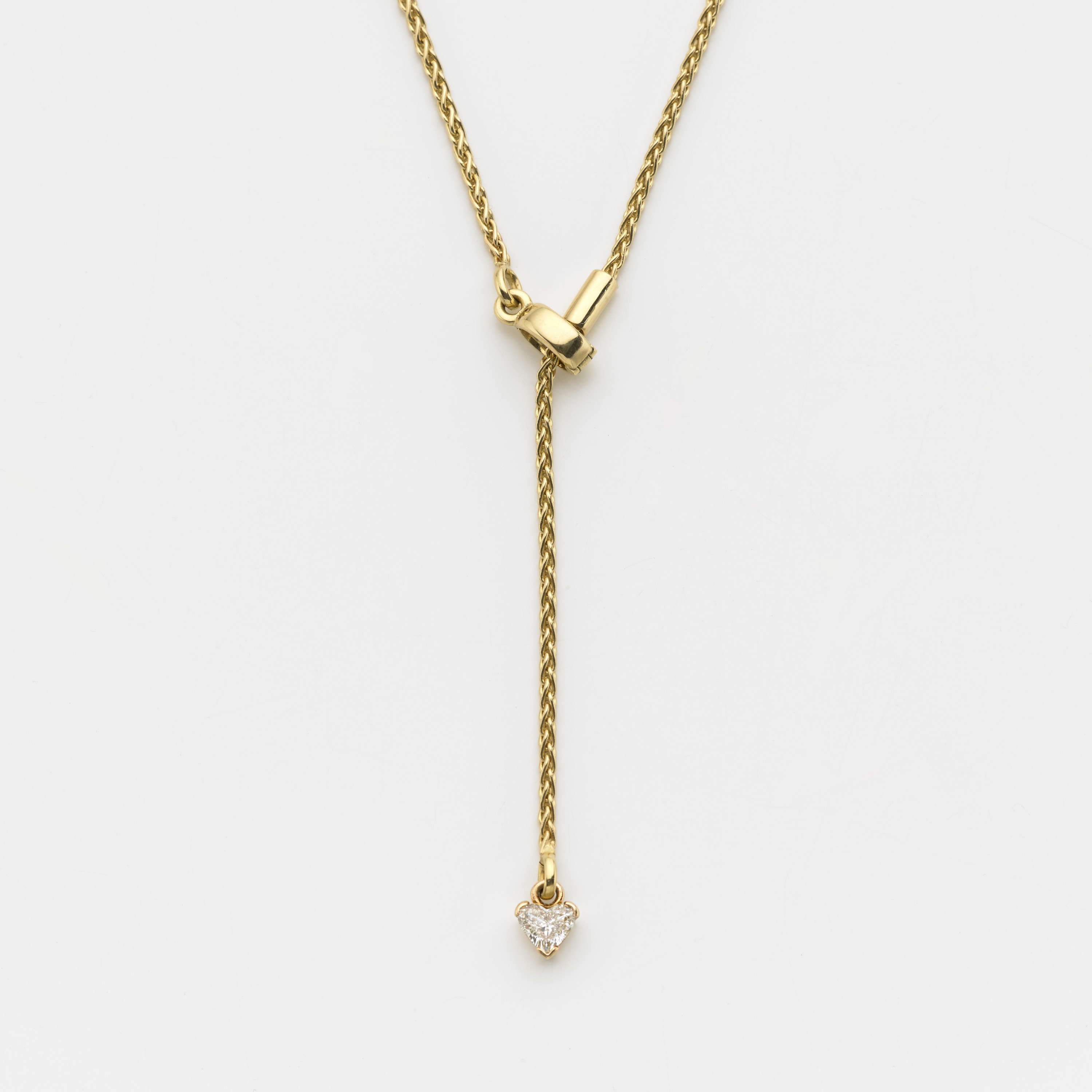 Saliscendi in oro giallo lavorato a cordone con diamante pendente a cuore di ct 0,85 circa, g.17,00 Gold sautoir with diamond pendant