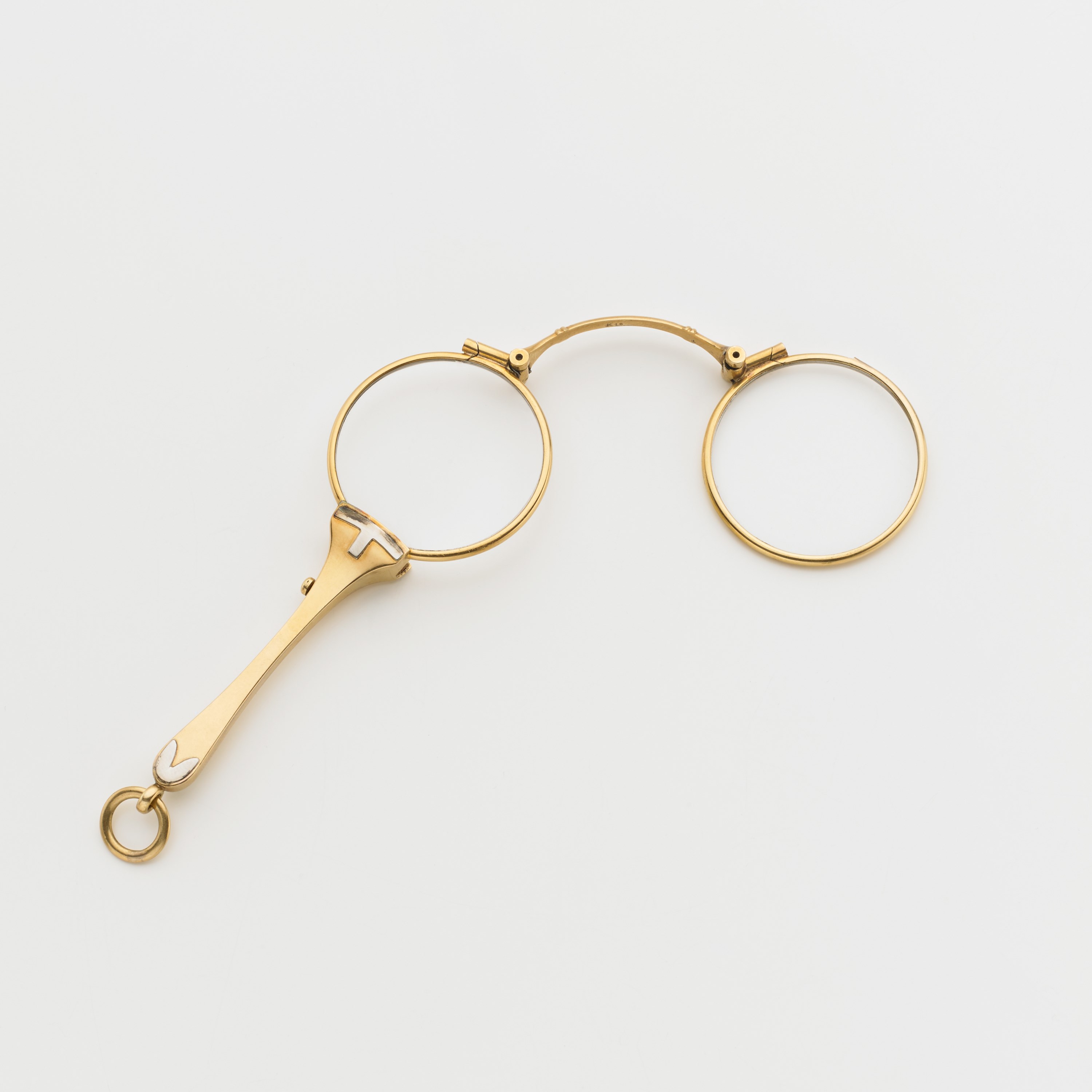 Lorgnette da lettura richiudibili a molla in oro giallo rifinito in oro...