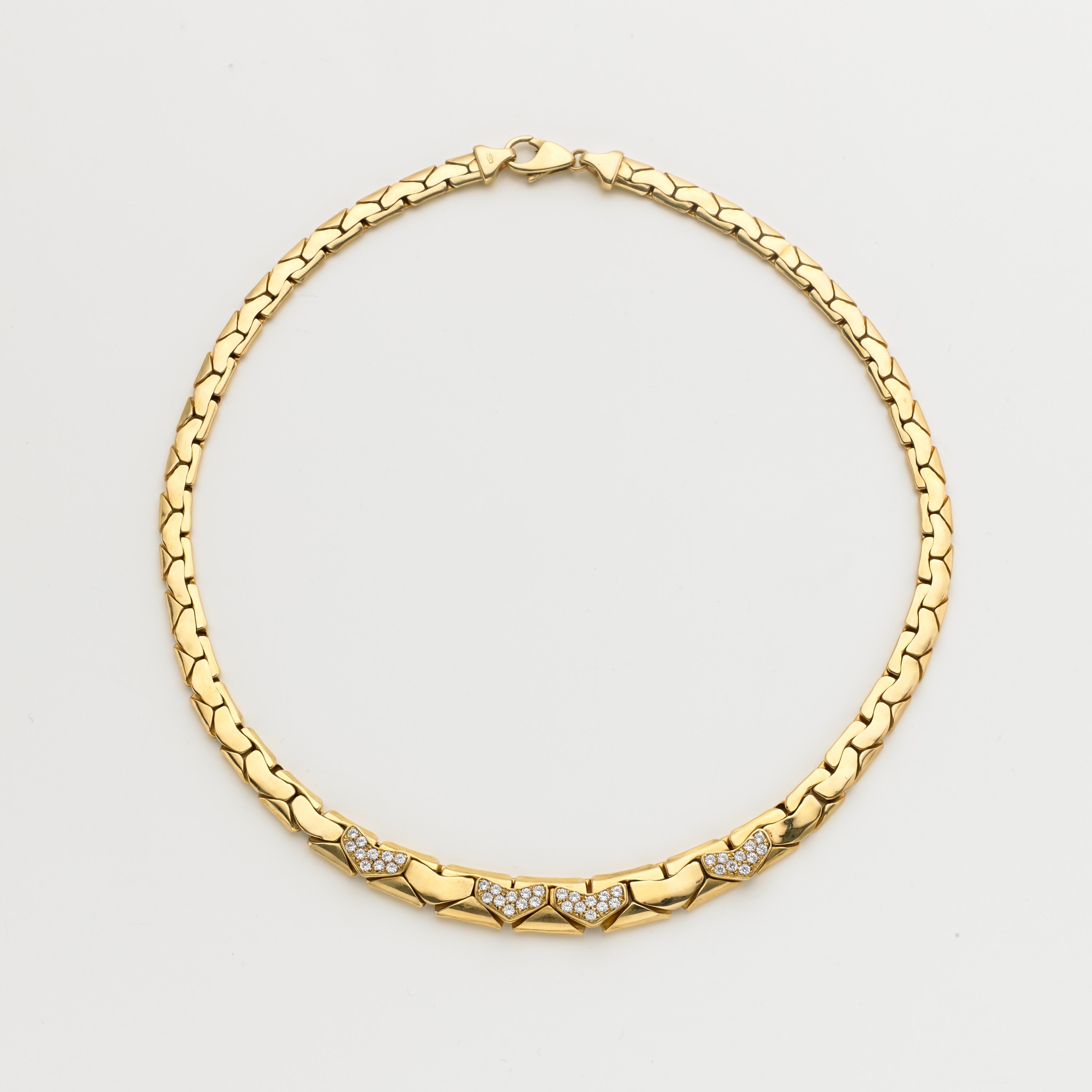 Collier in oro giallo scalato con maglie centrali a pavÈ di diamanti lungh....