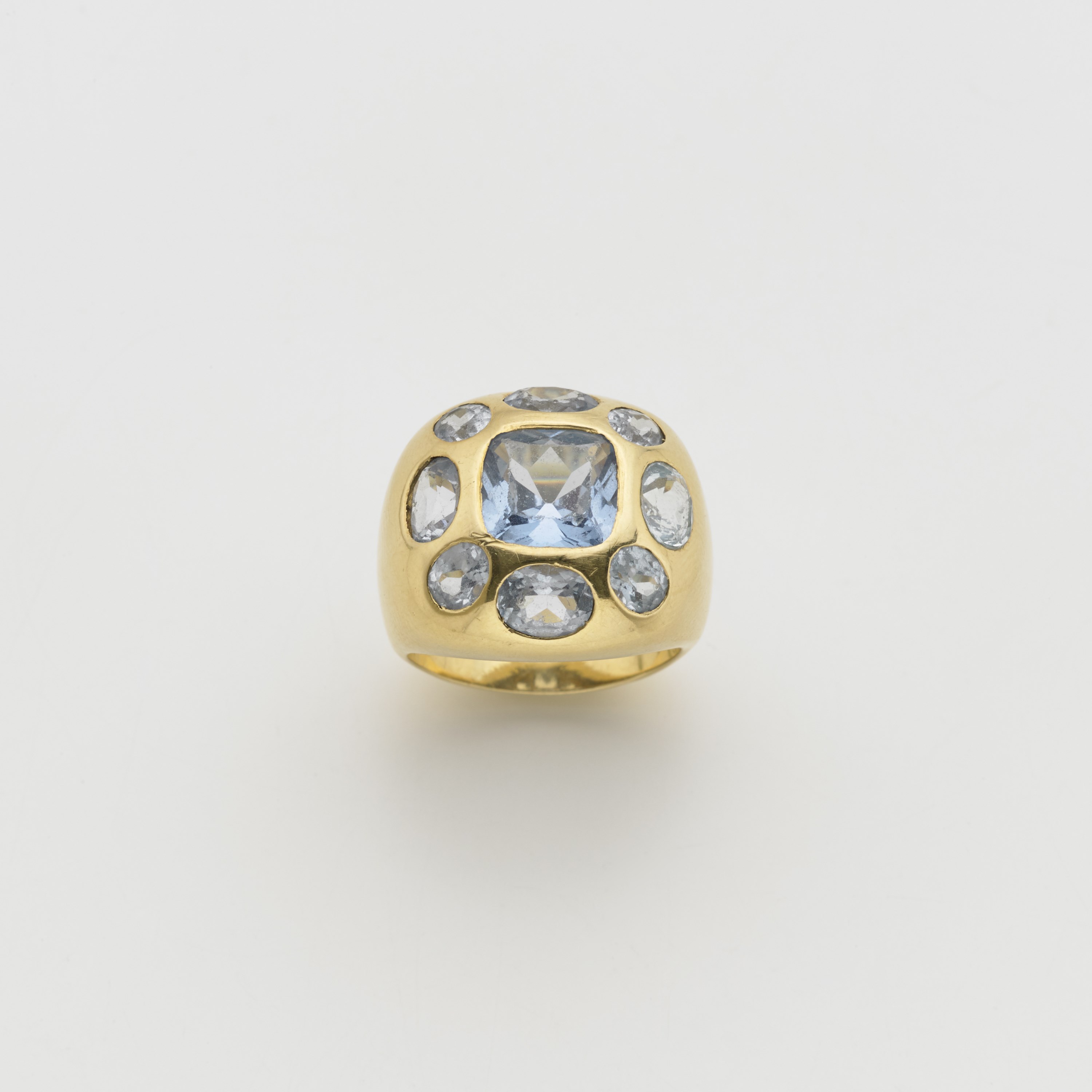 Anello bombÈ in oro giallo e pietre azzurre g.12,70 misura 15/55 Light blue stone bombÈ gold ring